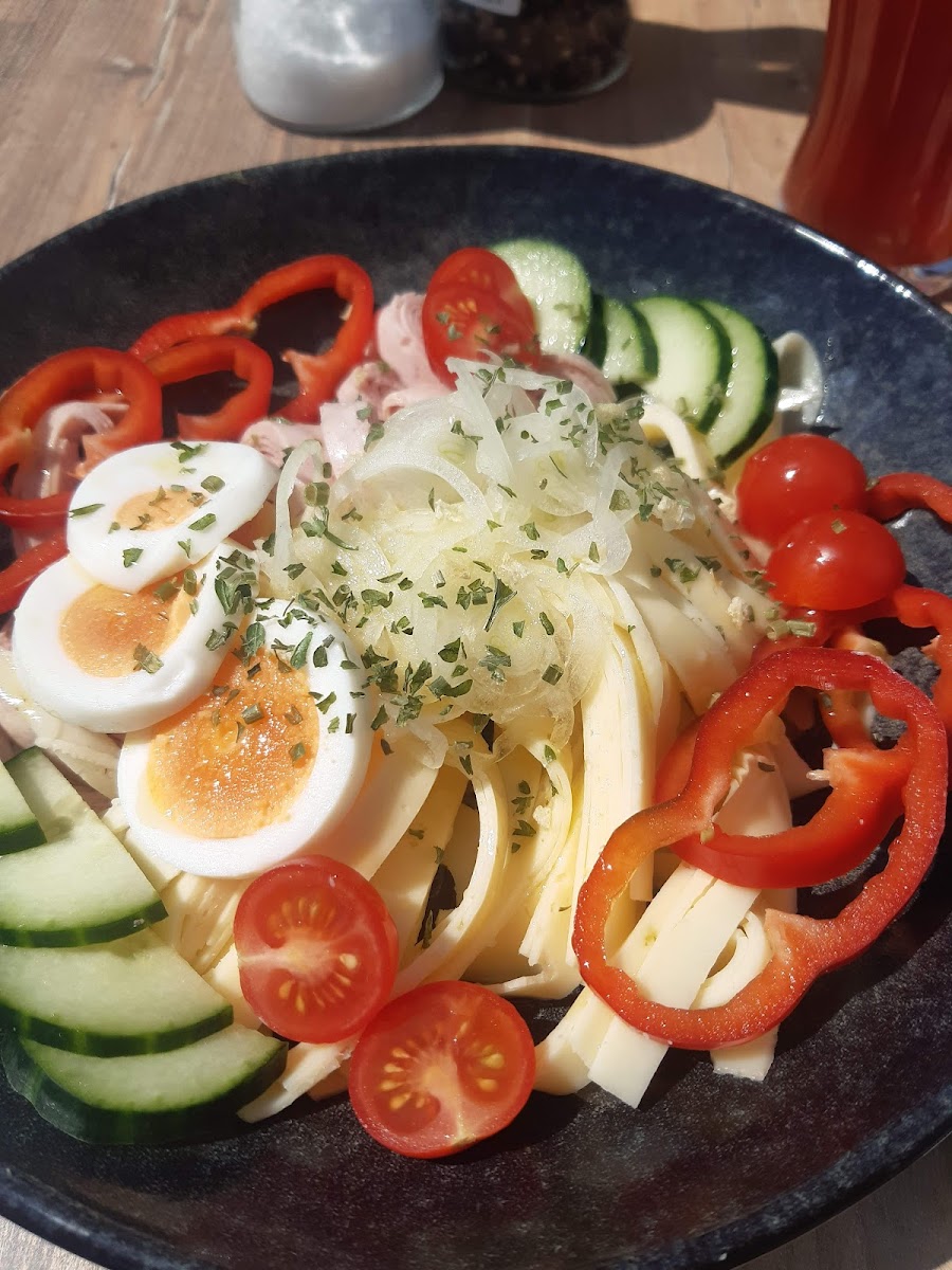 Gemütliches Ambiente und genug Platz! Wir haben eine Frühstücksplatte reserviert. Wirklich ausgezeichnet! Dazu gab es Eier nach Wahl und leckere Heißgetränke! Cafe war wirklich sehr lecker genauso wie das Restliche. Kellner auch außergewöhnlich nett. :D Große Empfehlung!